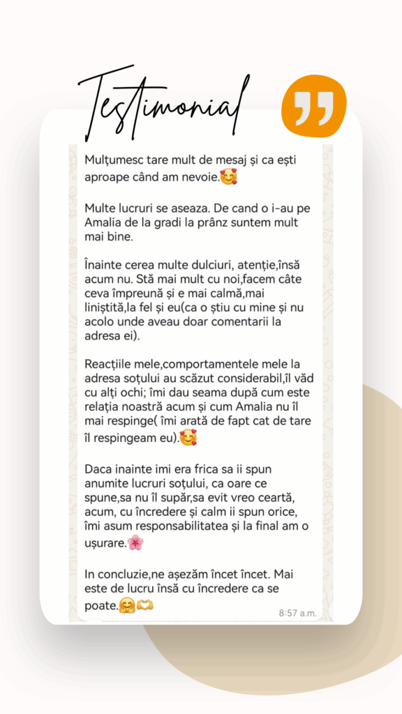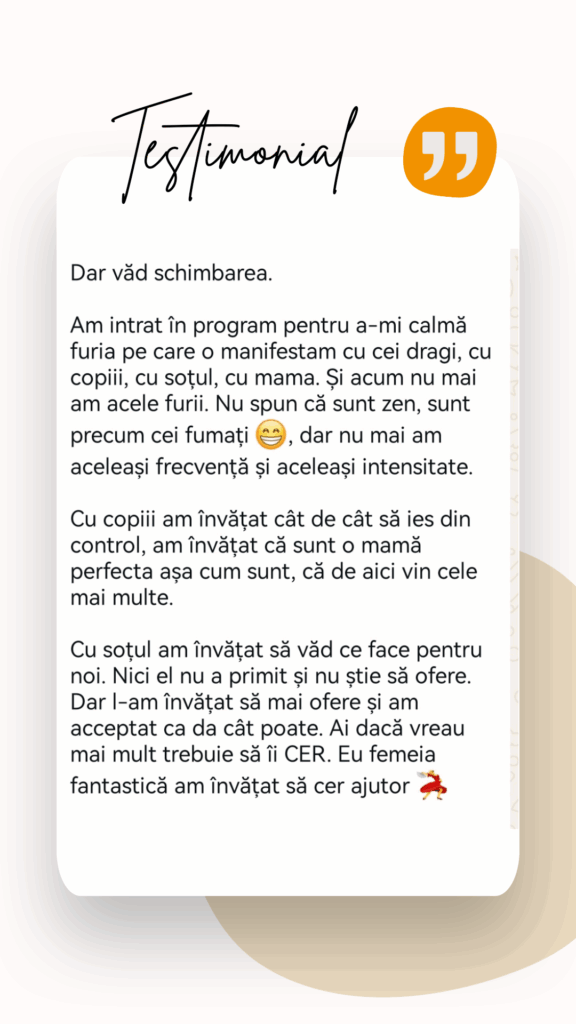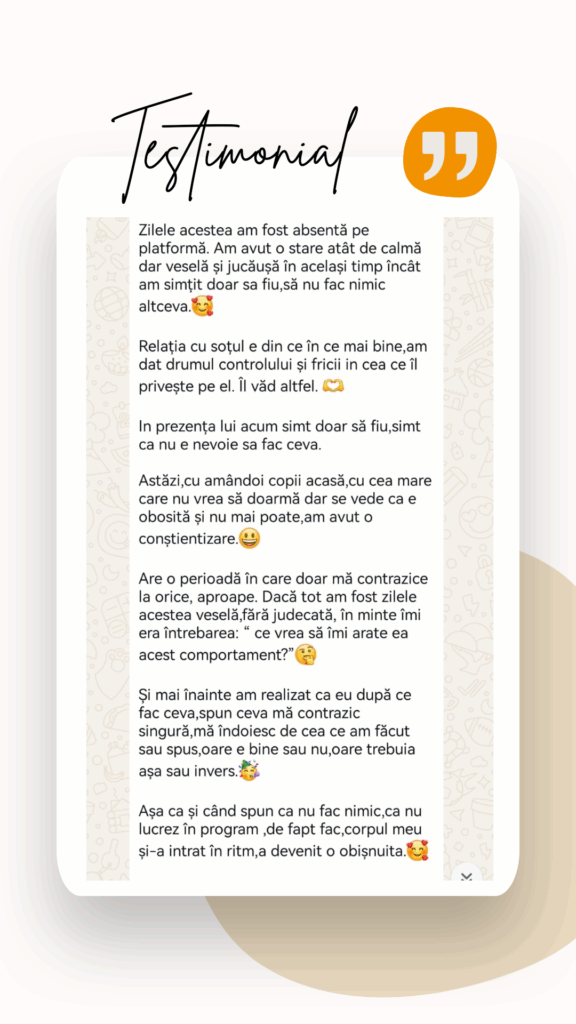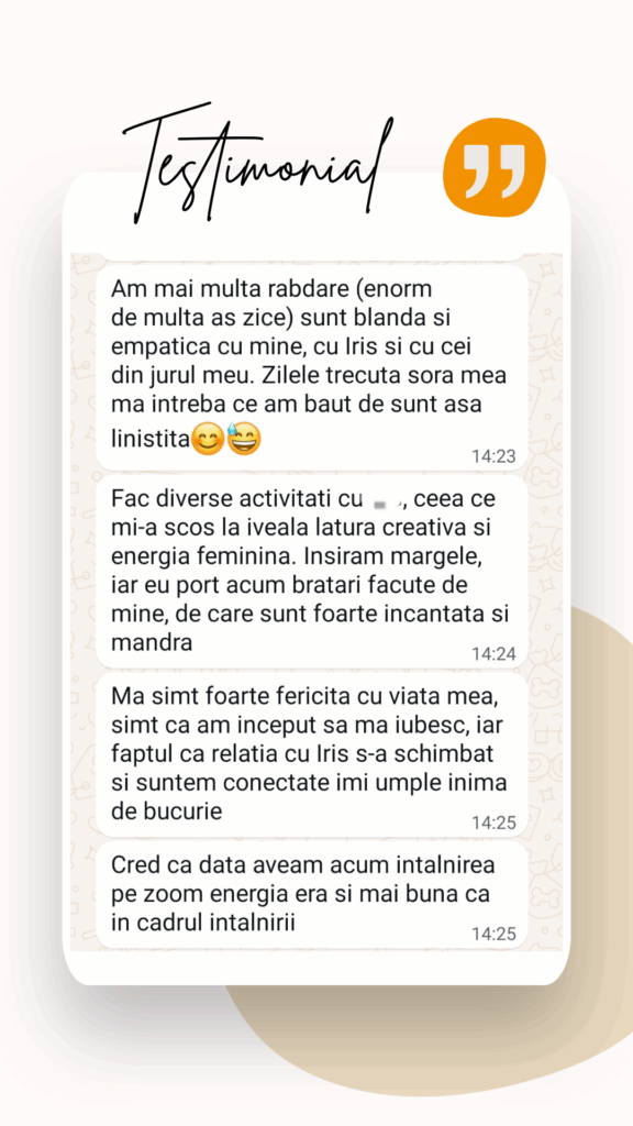 Descoperim împreună metoda prin care să devii cea mai bună variantă a ta ca mamă și soție, într-un spațiu sigur, folosind metode validate științific.
